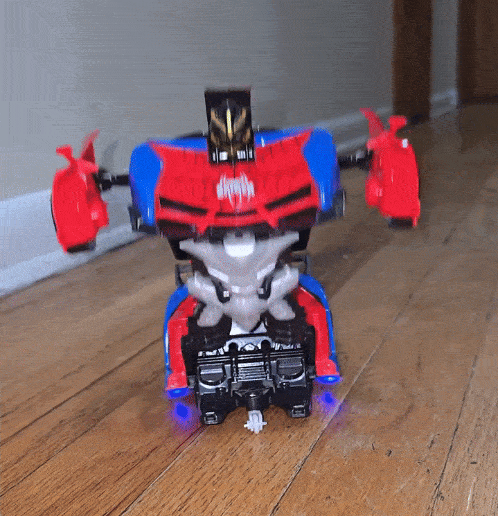 Transforms from bot to car in seconds, tap and watch the switch.